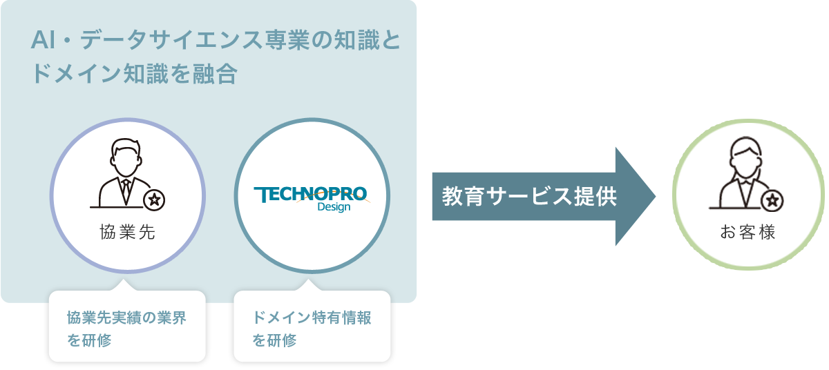 AI・データサインエス領域に特化した事業展開の中でテクノプロ独自の教育サービスと、テクノプロのアライアンスパートナーが保有する教育サービスをお客様ニーズに合わせて構築し、最適の内容をご提供しています。