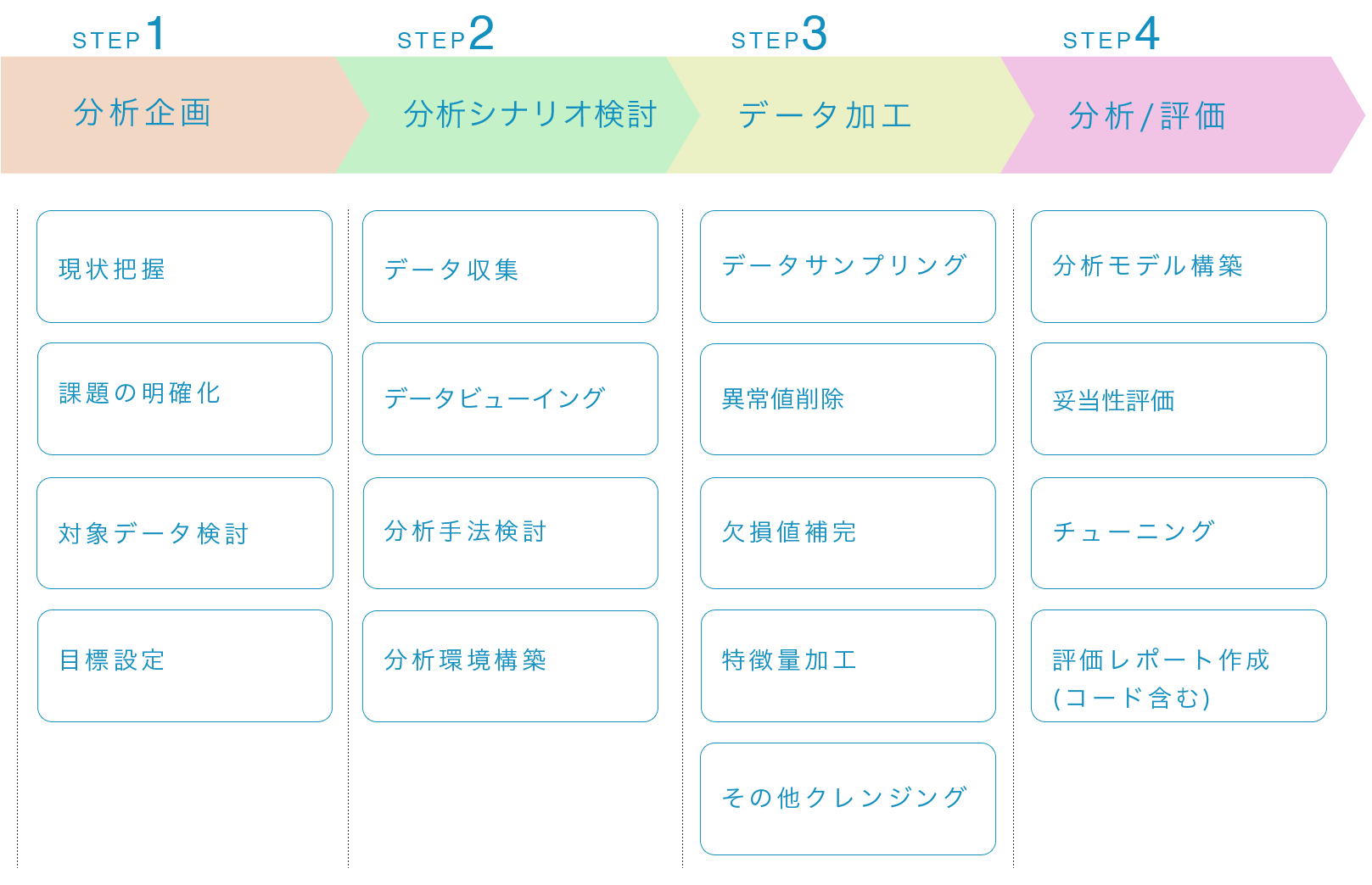 大手製造業を中心にAIデータサイエンス領域で100社以上支援してきた知見をもとにご相談が多い下記のような内容について、解決したい問題とゴールに合わせて、現在の状況を診断し、次のアクションのヒントが得られる内容になります。